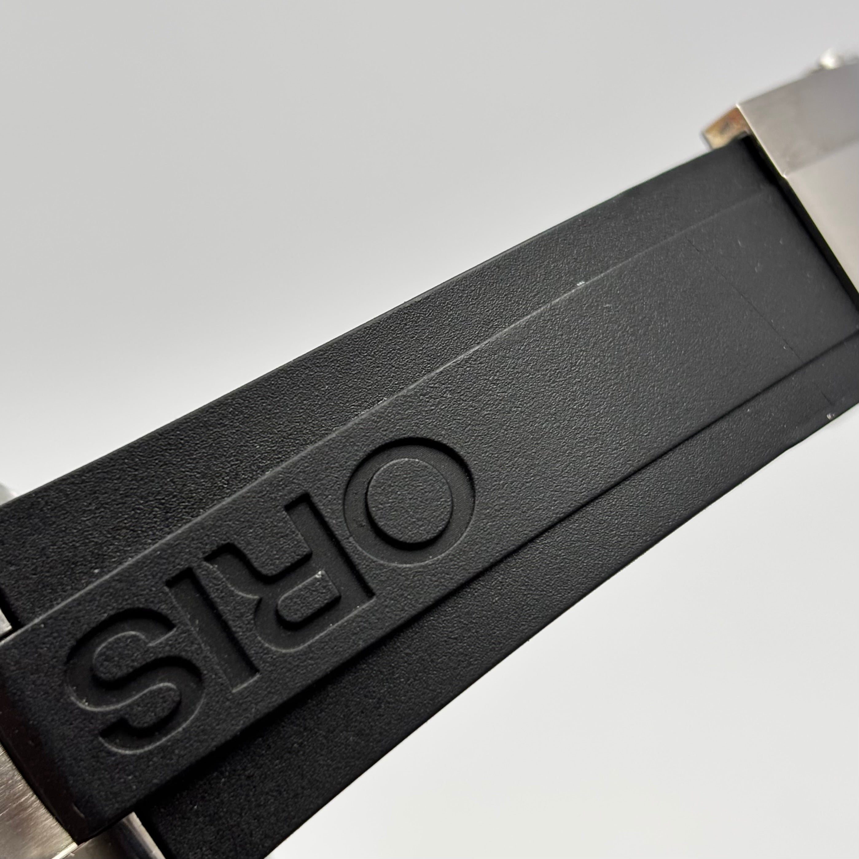 Equipado con el movimiento automático Oris Calibre 674, basado en el ETA 7750, ofrece funciones de cronógrafo, fecha y una reserva de marcha de 48 horas. Su esfera gris con índices y agujas luminiscentes asegura una excelente legibilidad en condiciones de poca luz, mientras que su cristal de zafiro abombado con tratamiento antirreflejos protege el dial de arañazos